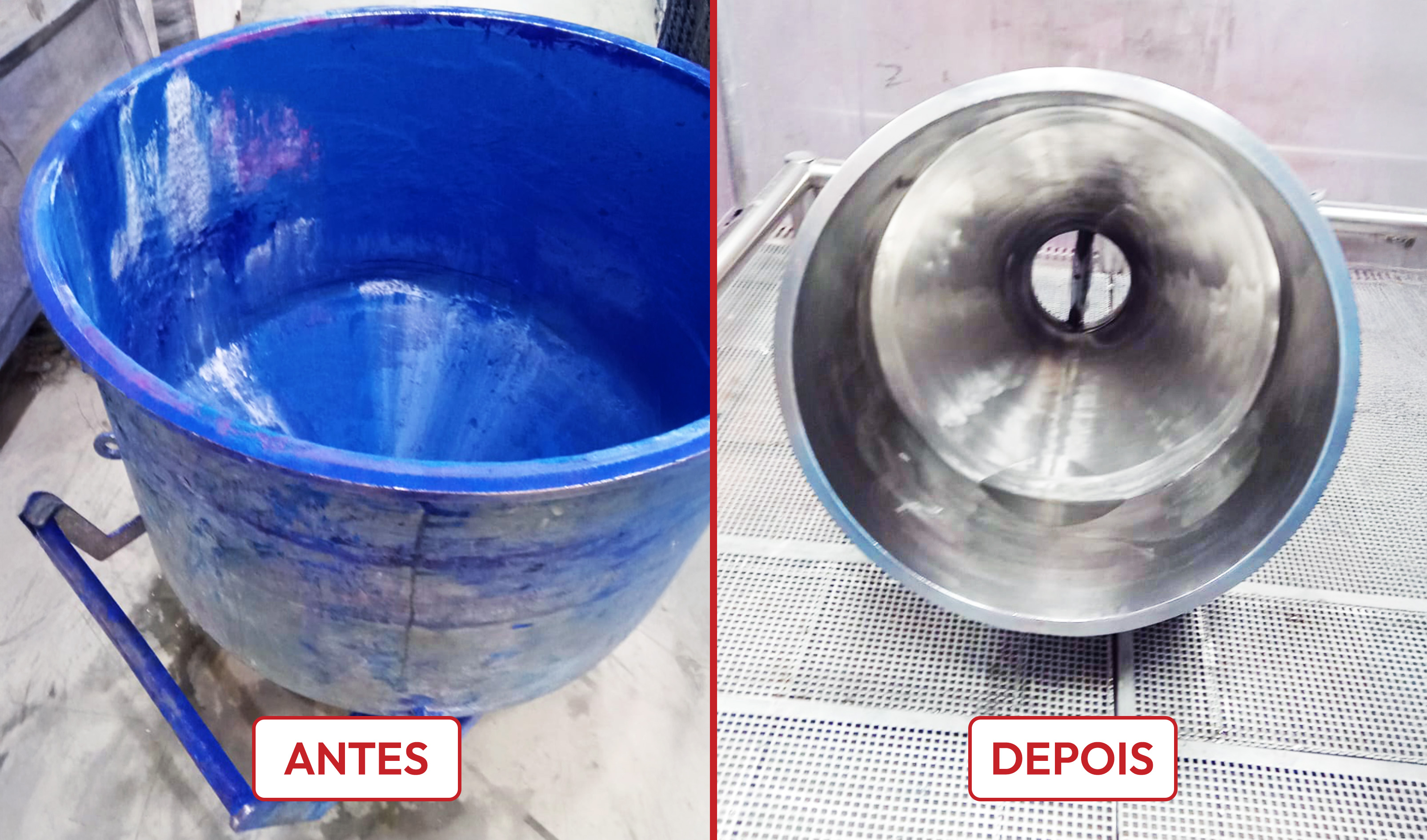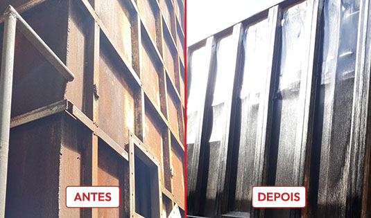 Superfícies metálicas após limpeza profunda, preparadas para pintura com EQUI LIMP 30.